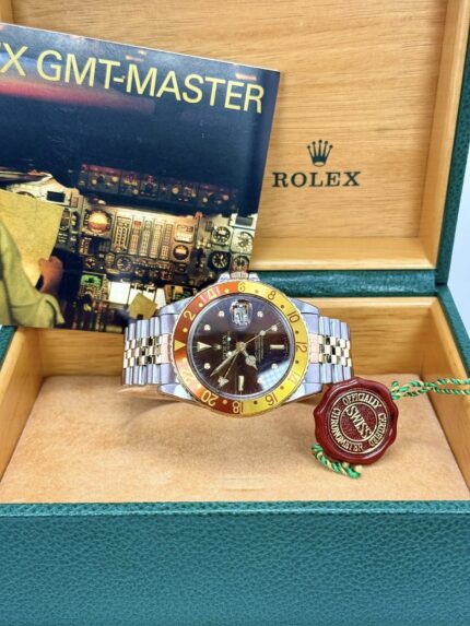 Rolex 40mm Two Tone GMT “Rootbeer” Model: 16713 Year: 1984 Size: 40mm Material: 18k gold and steel Mens 40mm two
