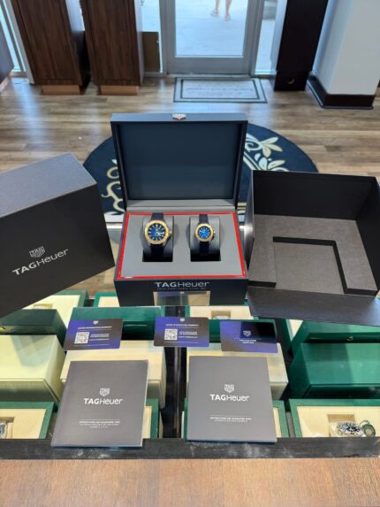 Tag Heuer His and Her set Model: WBP2150/WBP2450 Size:40mm/30mm Material: 18k gold, diamonds and steel A beautiful matching tag Heuer
