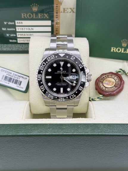 Rolex 40mm GMT Master II Model: 116710ln Year: 2014 Size: 40mm Material: Ceramic and steel Mens 40mm GMT Master II