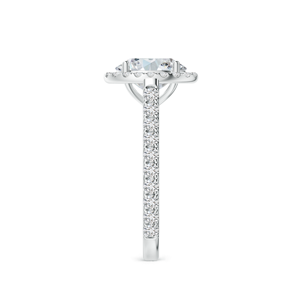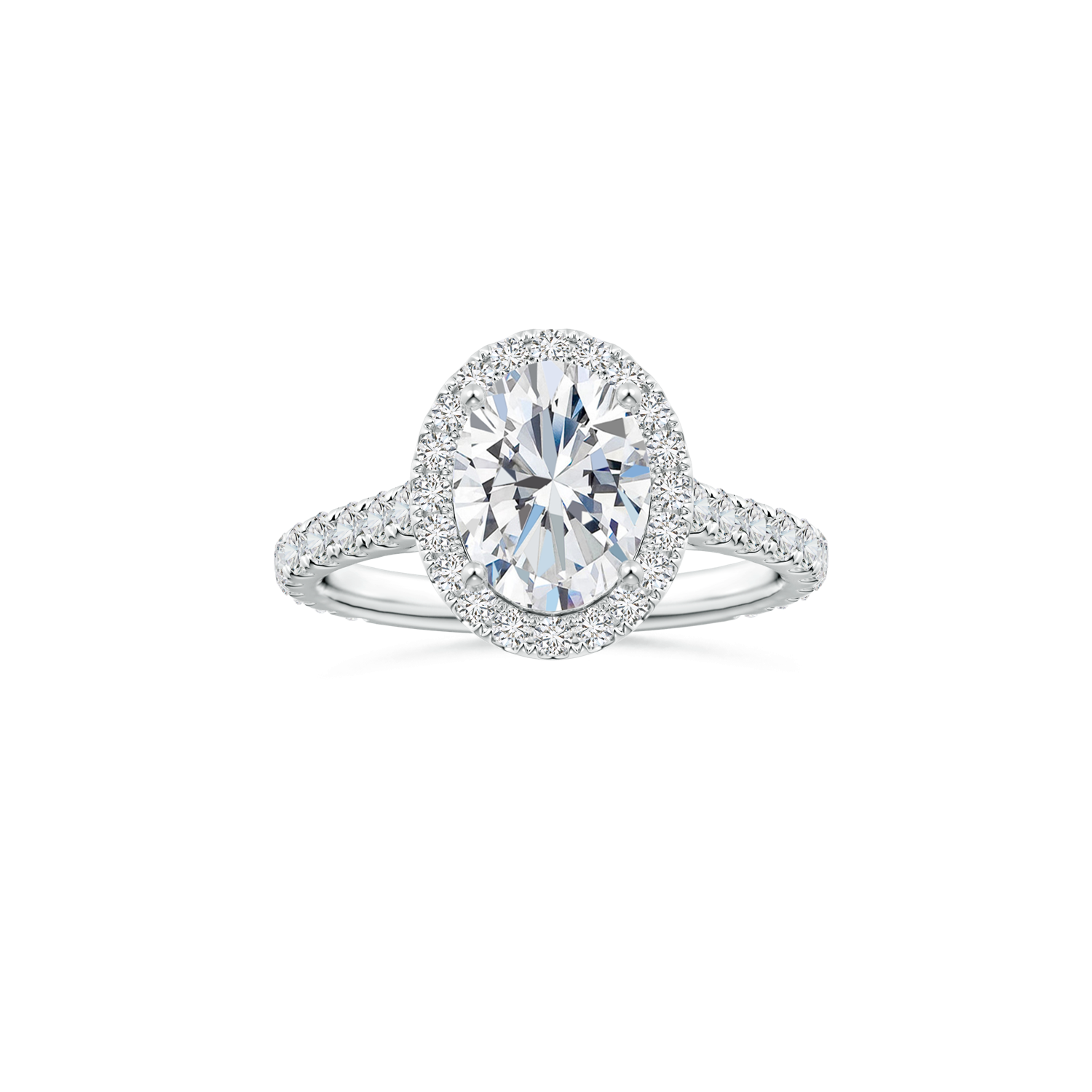 This 14k White gold Lab grown engagement ring features a stylish oval halo setting. The sparkling accents intricate make this piece truly spectacular.