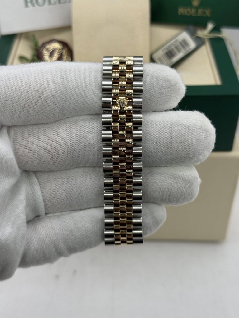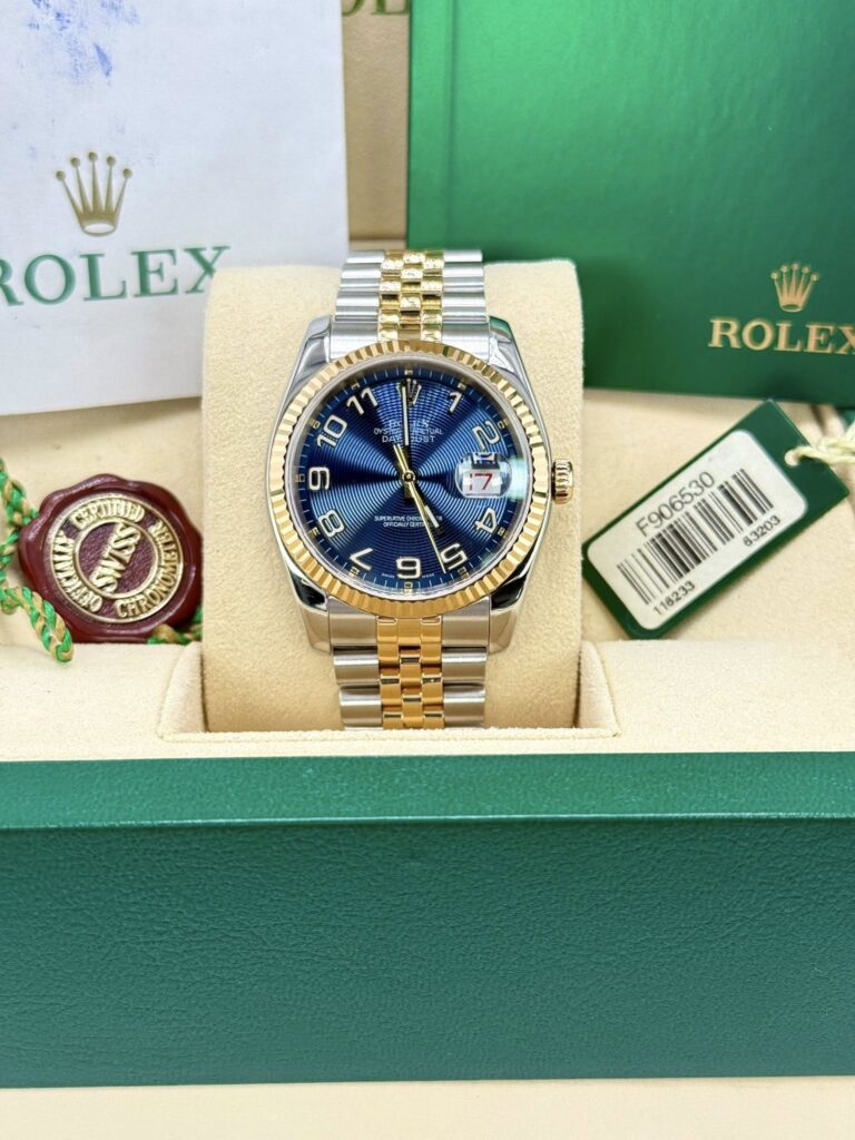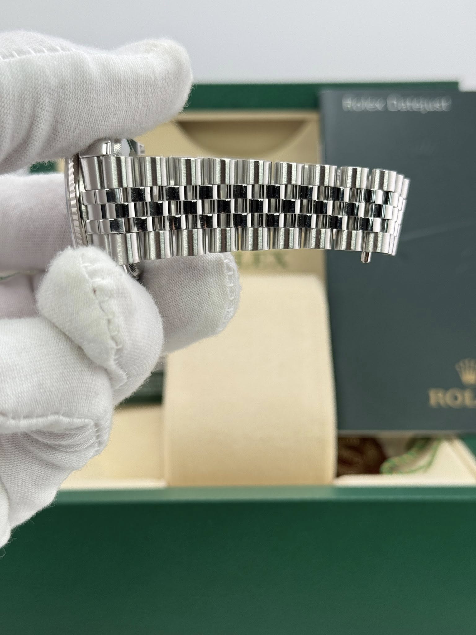 A stunning 36mm 18k white gold and steel Date-just. It features a solid 18k gold fluted bezel, steel jubilee bracelet and a beautiful blue anniversary dial. A newer reference model with hidden clasp jubilee. An amazing timepiece with a tight bracelet.