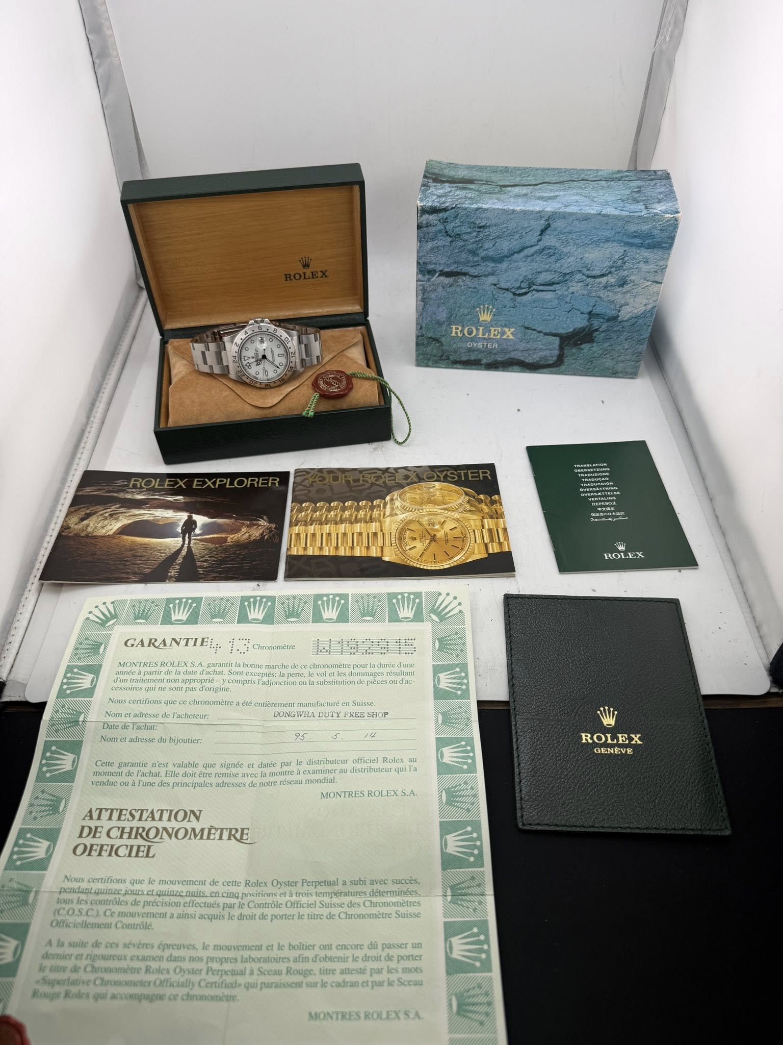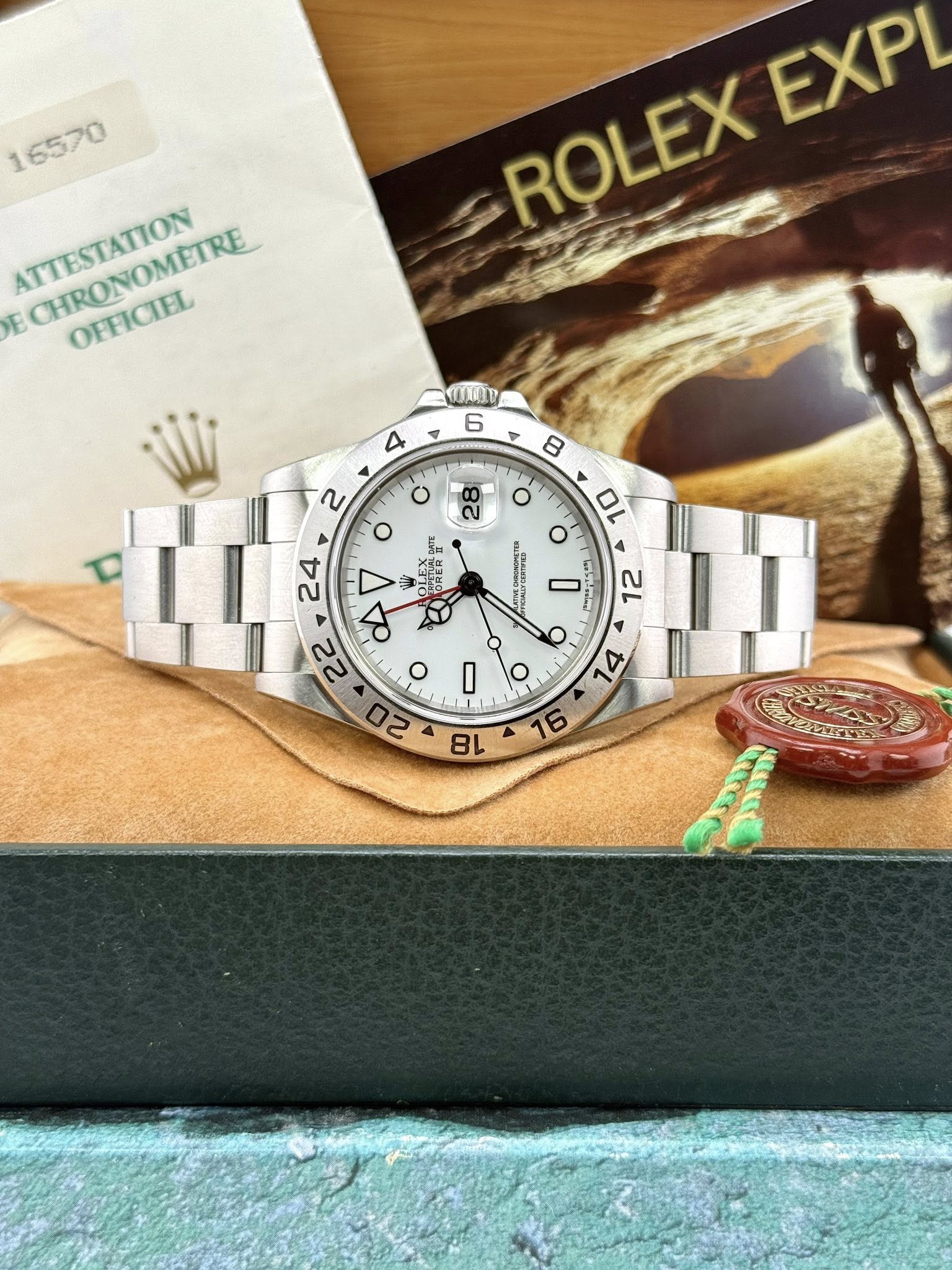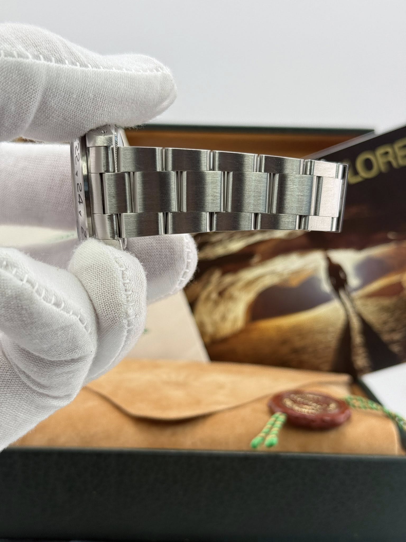 A 40mm steel Polar Explorer. It features a sapphire crystal, fixed 40mm bezel and distinct red GMT hand. The stunning white dial makes these a stand out piece and a great daily wearer.