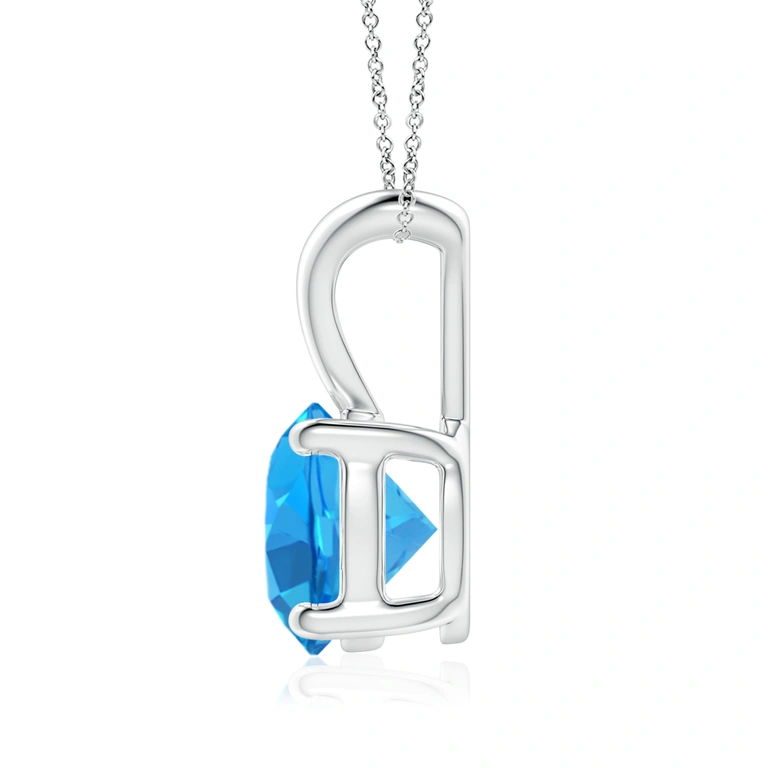 14 kt White gold V-Bale Round Swiss Blue Topaz Solitaire Pendant 1 ctw with cable chain